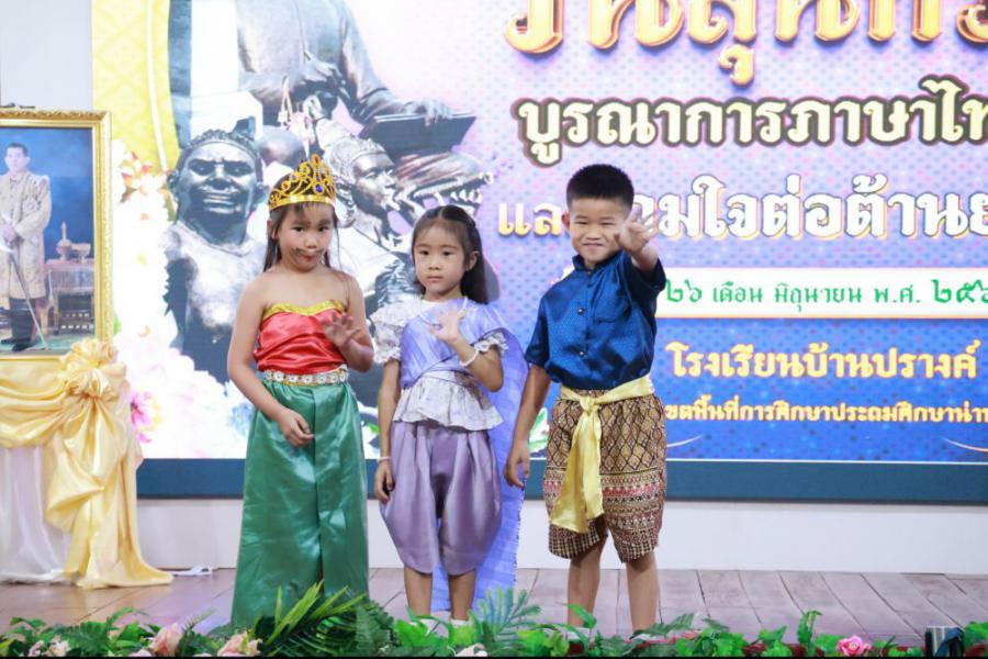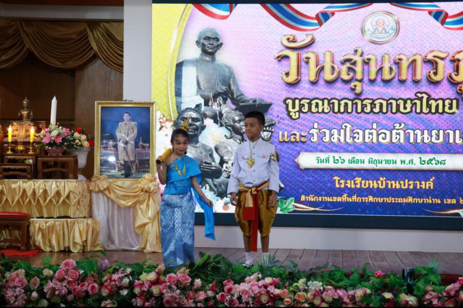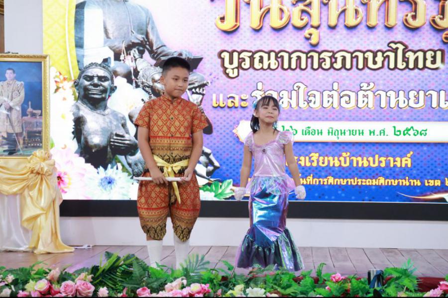 วันที่ 26 มิถุนายน 2568 (ภาคเช้า) โรงเรียนบ้านปรางค์ได้จัดและร่วมกิจกรรม "วันสุนทรภู่ บูรณาการภาษาไทยและร่วมใจต่อต้านยาเสพติด"นำโดยนายองค์การ วงค์เรือง ผู้อำนวยการโรงเรียน นางชัญธิกัลป์ภรณ์ นันทะน้อย นางสาวปณิสรา วงสุยะ รองผู้อำนวยการโรงเรียน คณะครูบุคลากรทางการศึกษาและนักเรียนตั้งแต่ระดับชั้นอนุบาล 2 ถึงระดับชั้นประถมศึกษาปีที่ 3 ร่วมกิจกรรมในครั้งนี้ การจัดกิจกรรมมีวัตถุประสงค์ 1. เพื่อให้นักเรียนได้แสดงความรู้ความสามารถรู้จักประวัติและวรรณกรรมของสุนทรภู่กวีเอกของโลก 2. เพื่อเชิดชูภาษาไทยที่เป็นภาษาประจำชาติไทยและดำเนินชีวิตให้ห่างไกลจากยาเสพติด 3. เพื่อส่งเสริมทักษะให้นักเรียนใช้ทักษะทางภาษาไทยด้านการฟัง พูด อ่าน เขียน ซึ่งเป็นทักษะพื้นฐานของการเรียนรู้ทุกรายวิชาได้ถูกต้องเหมาะสม และส่งเสริมให้นักเรียนได้แสดงความสามารถทางภาษาไทย ได้อย่างเต็มศักยภาพ S:1